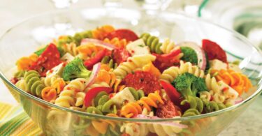 طعام سلطة المعكرونة الإيطالية مع البيبروني وجبنة الموزاريلا والبازلاء الصغيرة 6 سنوات سنيناضافة تعليق